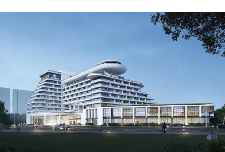 酒店建筑共12層,一層設酒店大堂、全日餐廳、多功能廳、健身房及兒童樂園;二層為宴會廳及后勤辦公;三層包含特色餐廳、零點餐廳及中餐包廂;四層至十一層為酒店客房,第十層設行政酒廊,第十二層配置泳池,滿足不同場景使用需求。商業部分共3層,均為商鋪,打造沉浸式消費空間;酒店配套建筑涵蓋員工餐廳、多功能報告廳、運動場及設備用房,全方位保障項目運營。